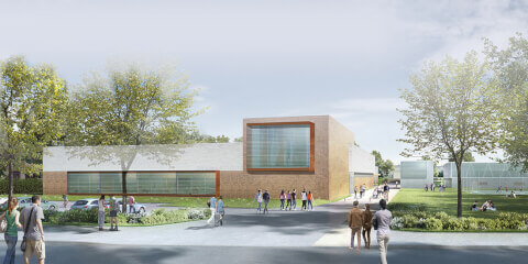 Gymnase existant, terrain de foot-ball, parkings, voiries douces, parc.
