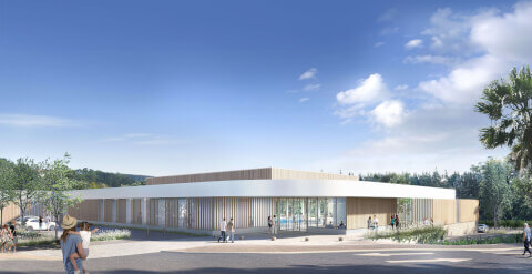 Démolition du bâtiment existant, de la fosse à plongée et de la pataugeoire. Rénovation et couverture du bassin de 25m et construction de locaux annexes neufs : Bassin 25m, 6 couloirs avec fond mobile sur 150m², cuve existante déplacée de 4m dans la longueur. Création de galeries techniques et sous-sol pour locaux techniques, espace accueil, administration, vestiaires, douches, halle bassin créée pour abriter le bassin sportif, locaux techniques et une cour de service. A l’extérieur : bassin estival de 15x12m en inox conservé, ajout d’une couverture thermique, rénovation des plages minérales et végétales, création d’un splashpad, parking avec 2 déposes minute.
