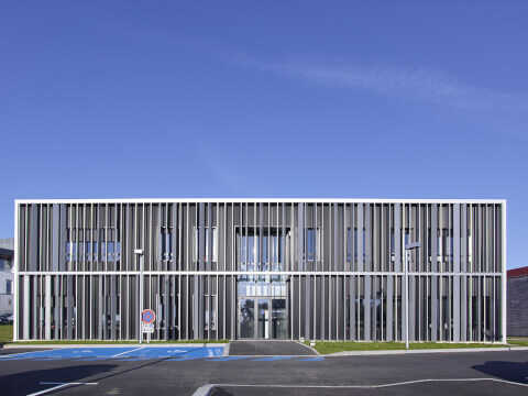 Construction d’un immeuble de bureaux de conception métallique,avec bardage et brise-soleil en aluminium.